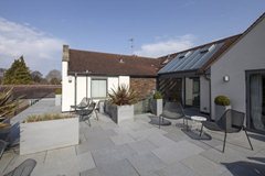 JM Weston Bouw er ansvarlig for byggeriet. De forsynede krydsfinertaget med et fugtspærrende lag, efterfulgt af 40 mm tykke Kingspan OPTIM-R Balkon- og Terrassesystem og et 25 mm Kingspan Therma TR27 FM dæklag. Derefter blev en vandtæt membran indarbejdet over isoleringen, og terrassen blev monteret på sokler.